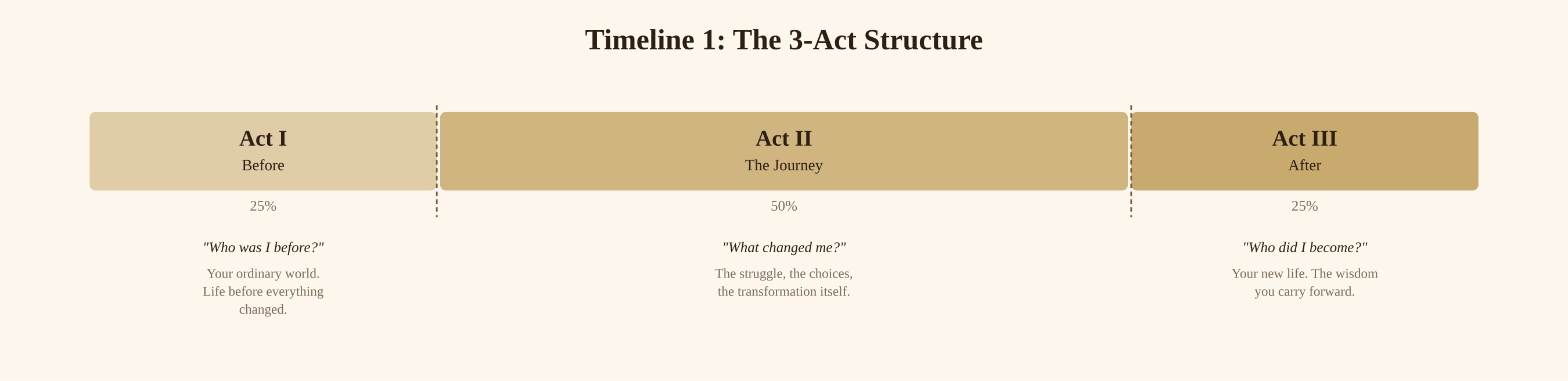 The three acts of your memoir — Before, The Journey, and After — and how to set your story's boundaries.