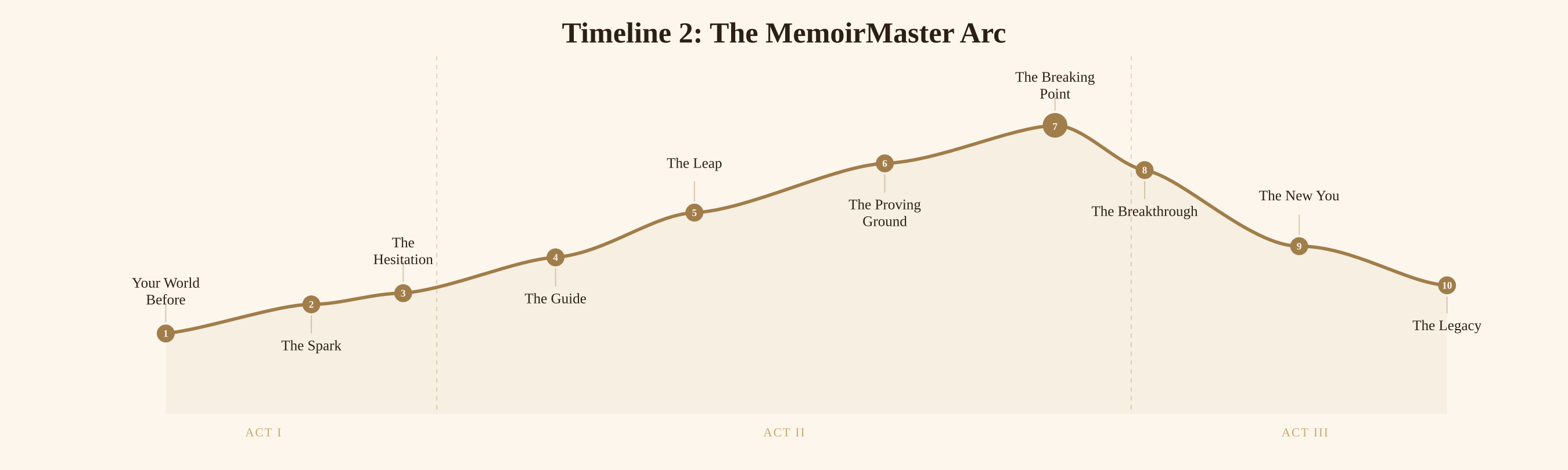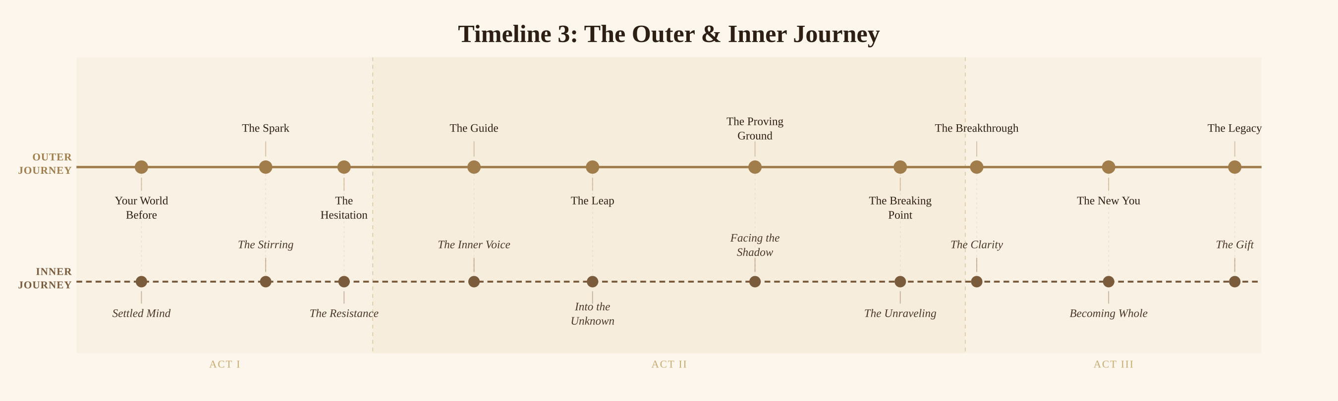 The 10 stages of your outer journey — the events and turning points that shaped your transformation.