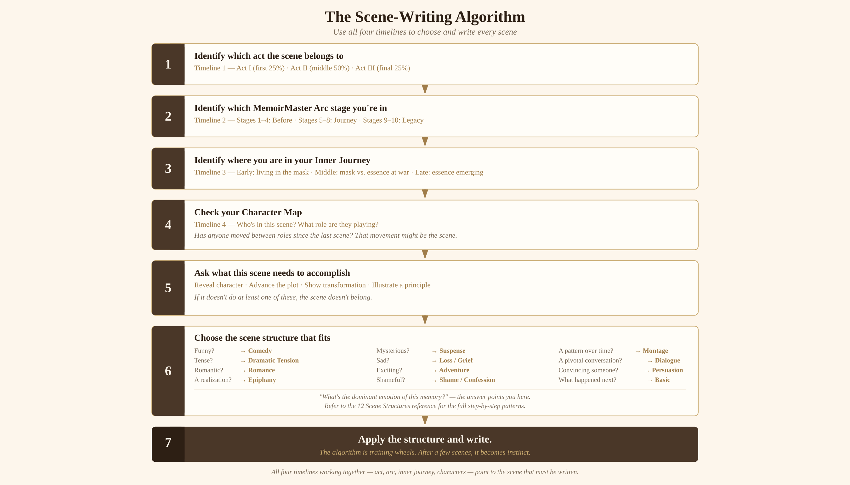 Every diagram from How To Write A Memoir, full resolution. Bookmark this page for easy reference as you work through the system.